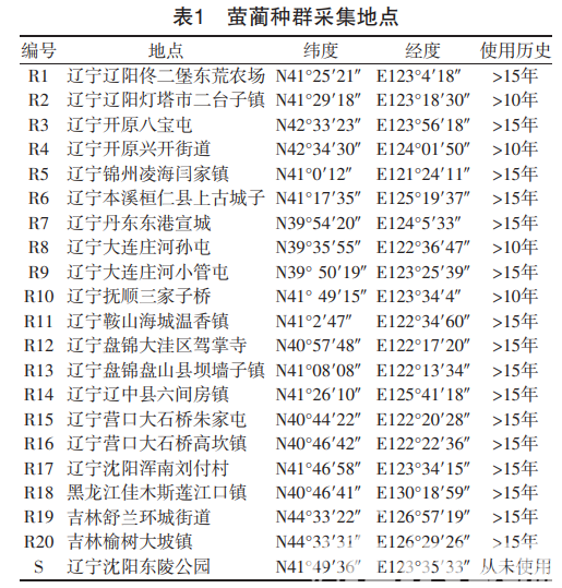 采自東北三省多年使用芐嘧磺隆的稻田里的螢藺 種子,具體地點及用藥歷史見表1。