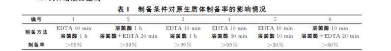 基因組shuffling過程中的關(guān)鍵步驟在于原生 質(zhì)體制備與再生,本實(shí)驗(yàn)中首先確定了制備和再生的培養(yǎng)基的種類?方法和滲透壓穩(wěn)定劑.另外酶解 的溫度?時(shí)間和酶解前預(yù)處理的因素見表1所示. 結(jié)果表明,在制備原生質(zhì)體時(shí),EDTA 預(yù)處理細(xì)胞 可以提高細(xì)胞壁酶解的效率.通過實(shí)驗(yàn)結(jié)果,本文 最終選擇的滲透壓穩(wěn)定劑為0.3mol/L的甘露醇, EDTA 預(yù)處理10min,酶解時(shí)間30min,原生質(zhì)體 再生采用自然擴(kuò)展法。